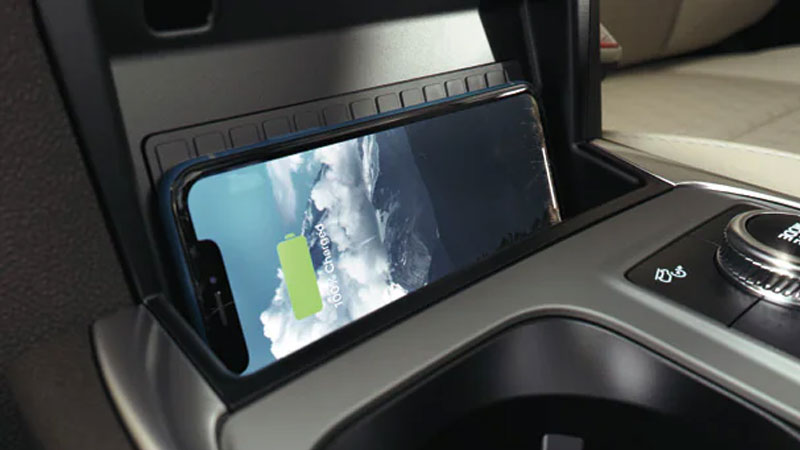 Một khay sạc không dây được bố trí thuận tiện phía trước bệ tì tay của khu vực điều khiển trung tâm, cho phép điện thoại của bạn sạc liên tục ngay trong tầm với.