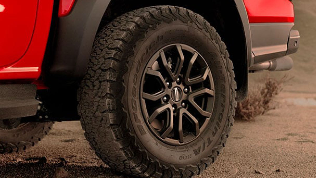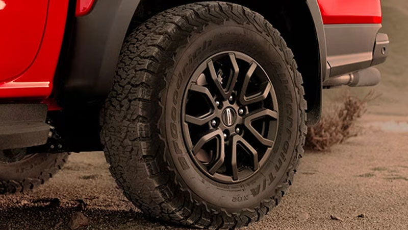 Bộ la-zăng hợp kim 17 inch hầm hố dành cho đường địa hình lắp với lốp xe BF GoodRich All-Terrain K02 hiệu năng cao danh tiếng (kích thước 285/70 R17). Dù vượt núi đồi hay chạy tốc độ cao, đều đáp ứng trong mọi điều kiện.