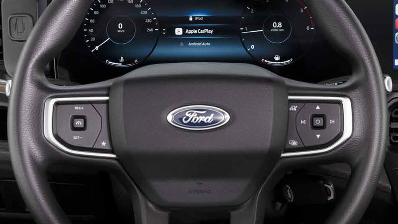 Hệ thống Kiểm soát hành trình được tích hợp tiện lợi trên vô lăng của Ford Transit mới, mang lại sự thoải mái tối đa cho lái xe trên đường dài.