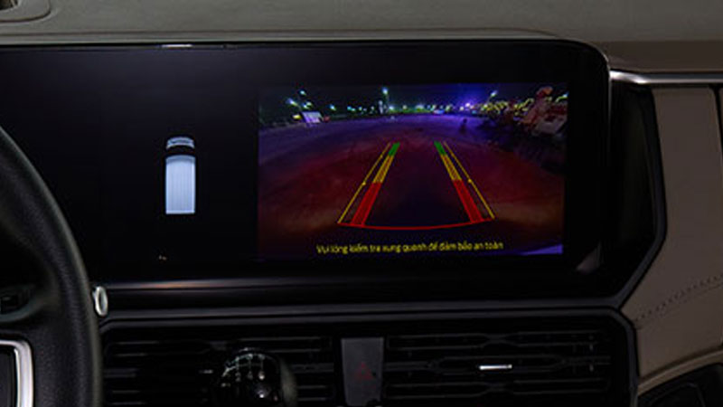 Camera lùi cùng Cảm biến hỗ trợ đỗ xe phía sau trên Ford Transit Hoàn toàn Mới cho phép lái xe quan sát và lùi xe an toàn hơn.